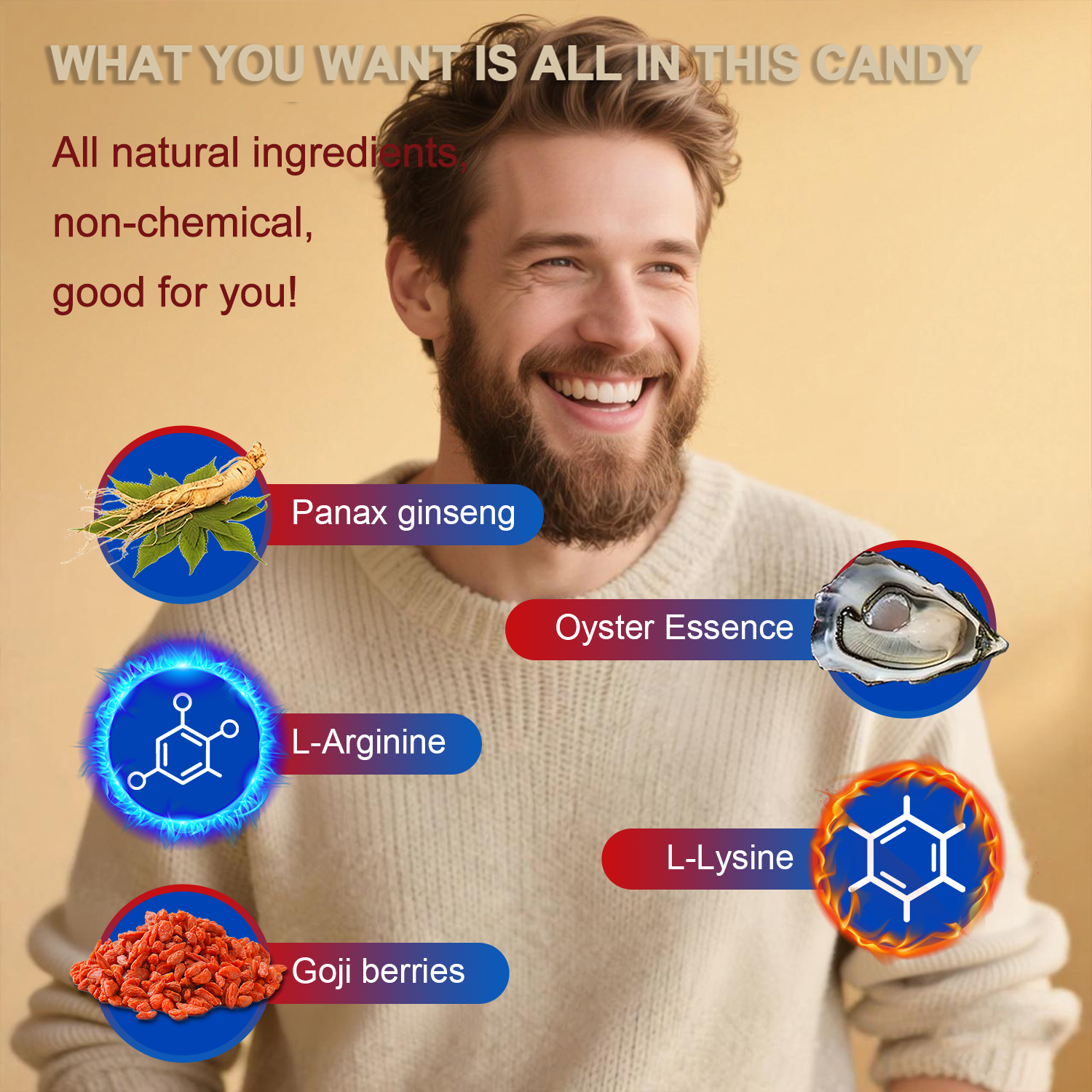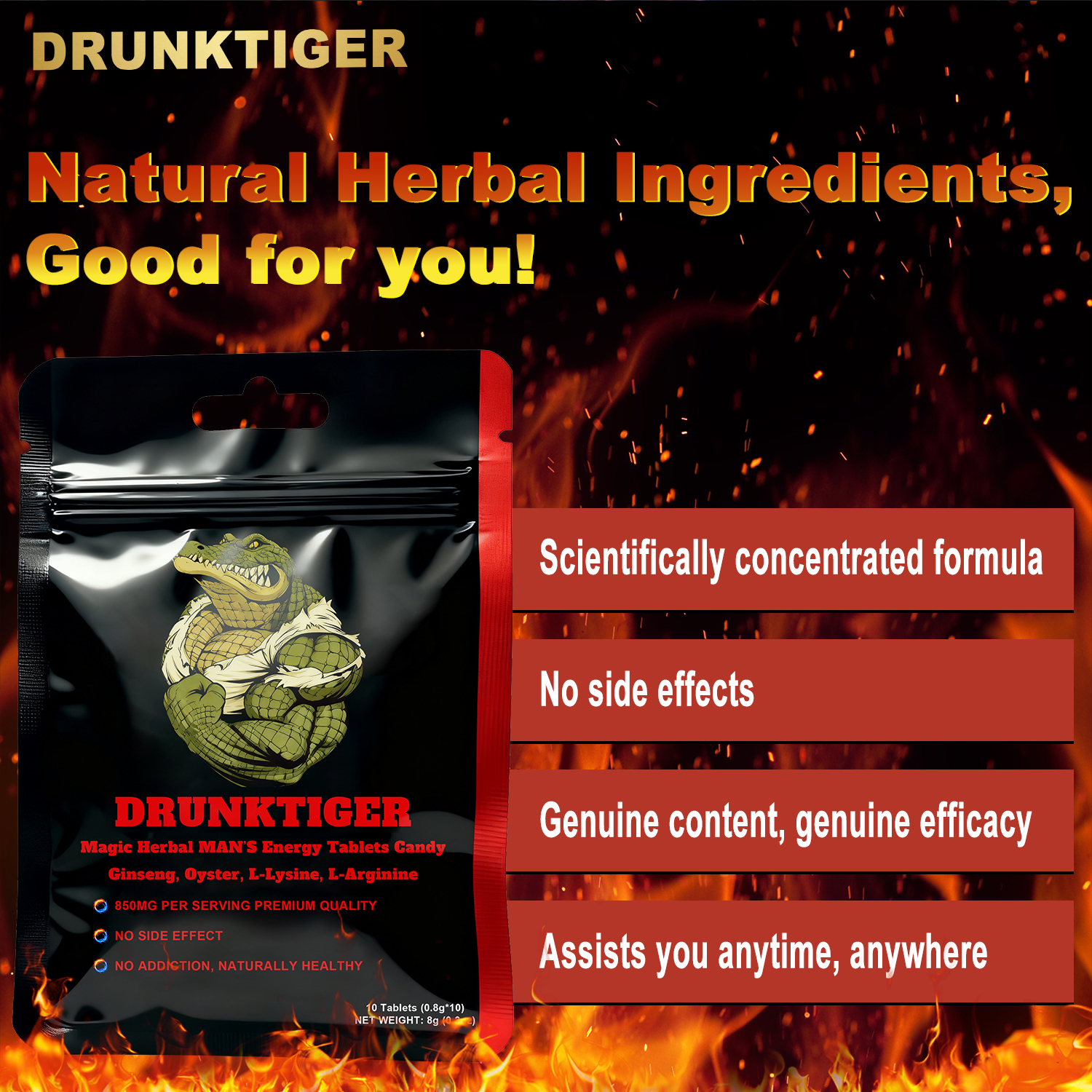 Magic Herbal Energy Candy, Natural Herbal Extracts With Ginseng, Oyster Peptides, Horny Goat Extract, L-arginine & L- Lysine. Free Chemical Additives & Side Effects. Support Energy, Focus & Daily Vitality In Work And Life