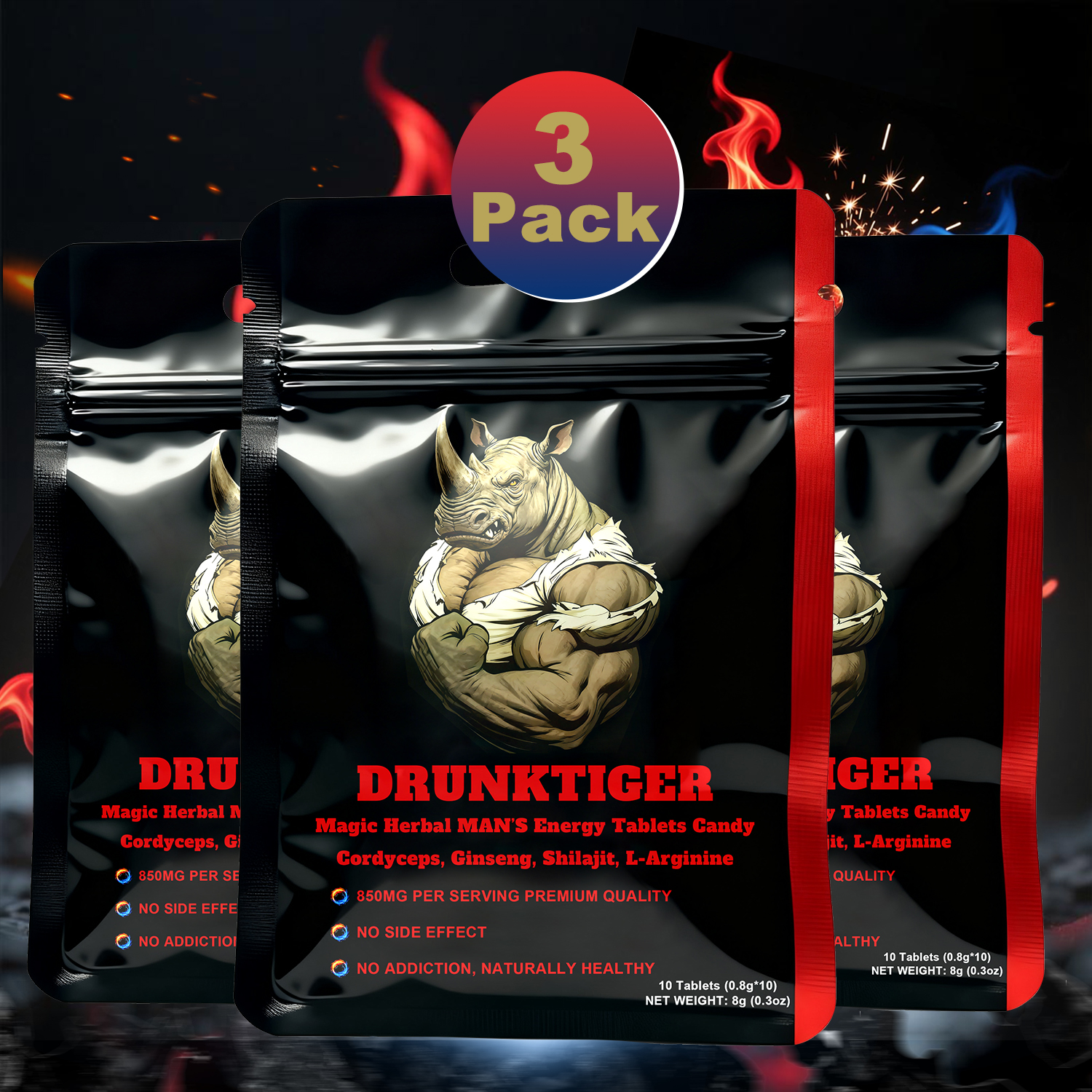 3 Packs Magic Herbal Energy Candy, Premium Formula, Natural Herbal Extracts With Cordyceps, Ginseng, Shilajit, L-Arginine, Goji Berries. Chemical-Free, No Side Effects. Supports Energy And Focus. Conveniently Portable, Support Your Work And Life